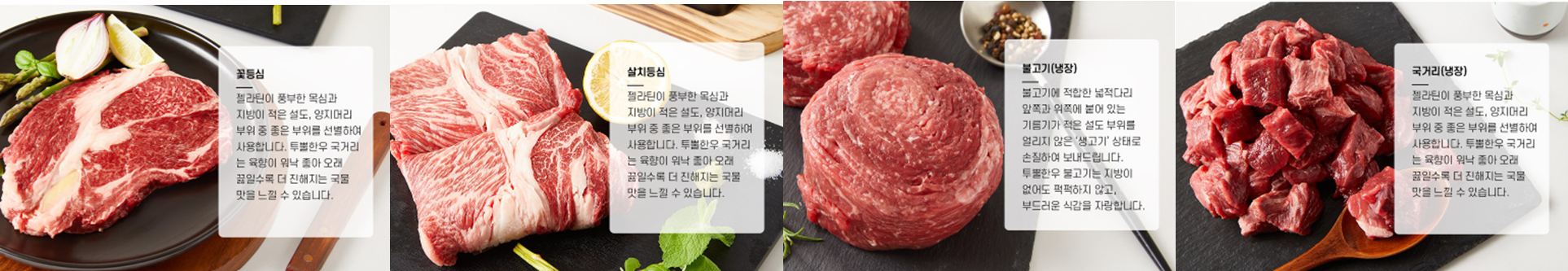 현재 35%%의 할인을 진행 중이며 꽃등심, 살치등심, 불고기, 국거리 4종 구성으로 구매 가능 합니다.